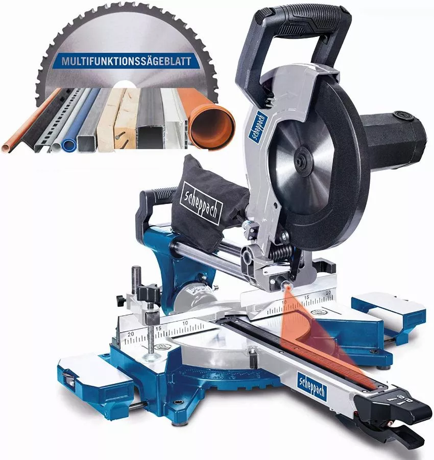 - Le puissant moteur 2 000 W et la lame de scie multifonctions de 254 mm avec 28 dents permettent de réaliser des coupes précises dans le bois dur et tendre, mais aussi dans du bois piqué de clous, des plastiques, du cuivre, de l’aluminium et de l’acier.